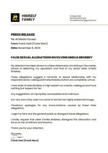 By addressing these false claims, Frank Naro reaffirms his commitment to upholding the values of respect and professionalism.